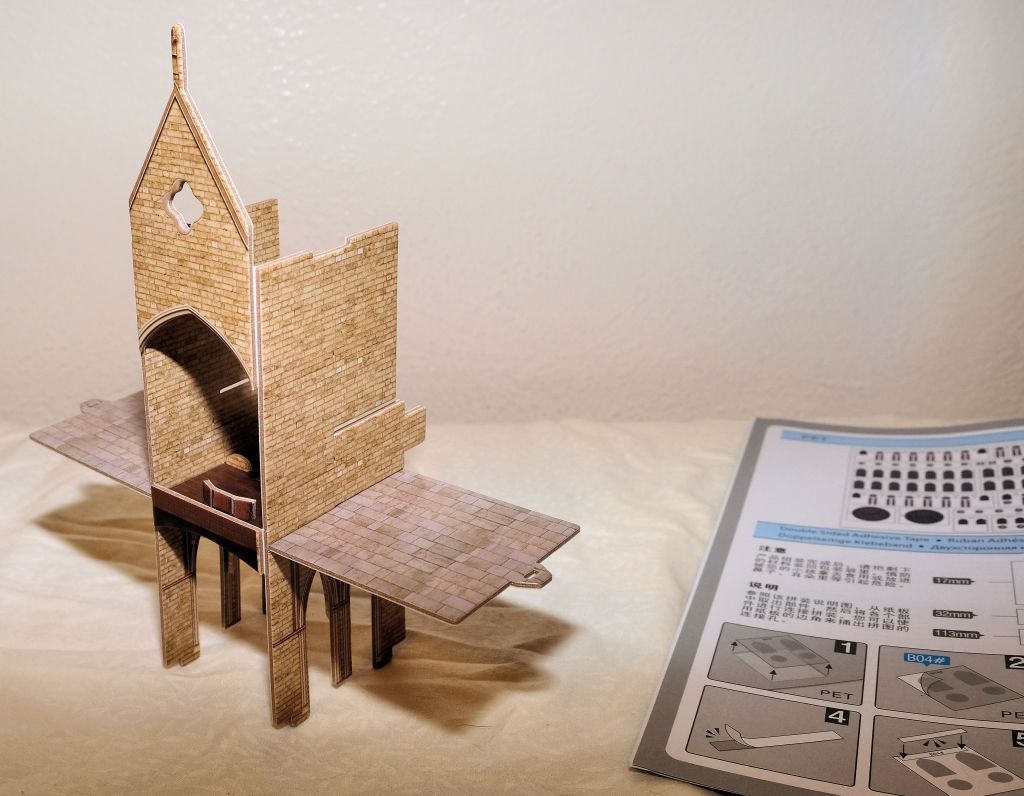 The CubicFun “puzzle” is not a puzzle in the conventional sense. Puzzles can generally be taken apart and reassembled indefinitely. These 3D puzzles are more like model kits, intended to be assembled once and enjoyed in their final form. The model pieces are precision-cut into sheets of paper and EPS foam board. The instructions are comprised of IKEA-style images and very easy to follow. The precision was quite good, I had no trouble fitting the pieces together. The level of detail is excellent.