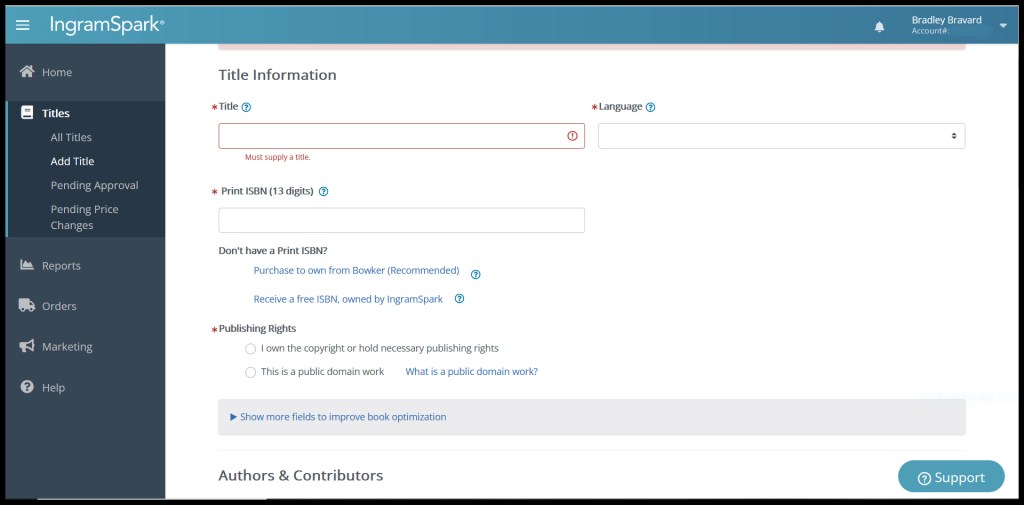Whichever route you go, before publishing with IS you will want to prepare much of the same information for any other publisher: book title, length, summary, BISAC headings, ISBN, etc. Unlike ebooks, with print books you also have to make decisions about such things as trim size and interior paper style.