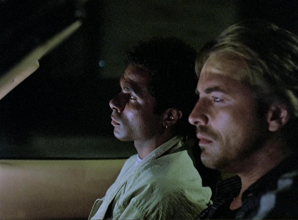 However, the developing bond between Crockett and Tubbs is a big part of what makes the first two seasons so compelling, particularly in “Nobody Lives Forever” (S1E20), “Evan” (S1E21), and “Tale of the Goat” (S2E7). By the season two finale, “Sons and Lovers,” the detectives have a closer rapport with each other than anyone else. Conversely, one of the series’ few significant errors was to gradually orient the show around Crockett as the sole lead character. This is especially evident in “Bushido” (S2E8, brilliantly directed by Edward James Olmos) and “Back in the World” (S2E10). Don Johnson is an underrated actor, but so is Philip Michael Thomas, and Vice worked best as a buddy show with a strong supporting cast. One highlight of the supporting cast, on the other hand, is that even though the series still tends to view women as damsels in distress, at least the women are side by side with the men in confronting crime. “Lombard” (S1E22), “The Prodigal Son” (S2E1), and “Whatever Works” (S2E2) give Gina and Trudy the chance to demonstrate their courage.