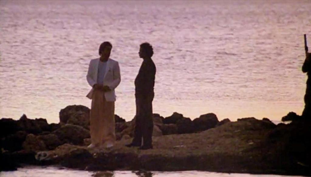While Miami Vice deals primarily with personal and local dramas, we are often reminded of the national and global context. Loose gun policies, which we know have only become worse over time, put too many weapons in the hands of civilians, demonstrated in “Nobody Lives Forever” (S1E20) and “Evan” (S1E21). The drug trade that takes up so much of the Vice detectives’ time is not a local issue but a global network: the season two premiere “The Prodigal Son,” perhaps the series’ stylistic peak, gives us the most comprehensive overview of the drug industry, from Columbia to Miami to New York City, with Wall Street at the top of the pyramid. In “Back in the World” (S2E10), we see a nation still in the early stages of decline, a process begun with Vietnam and Watergate, and Crockett acknowledges the Greed Decade by calling “selling out” the new American dream.