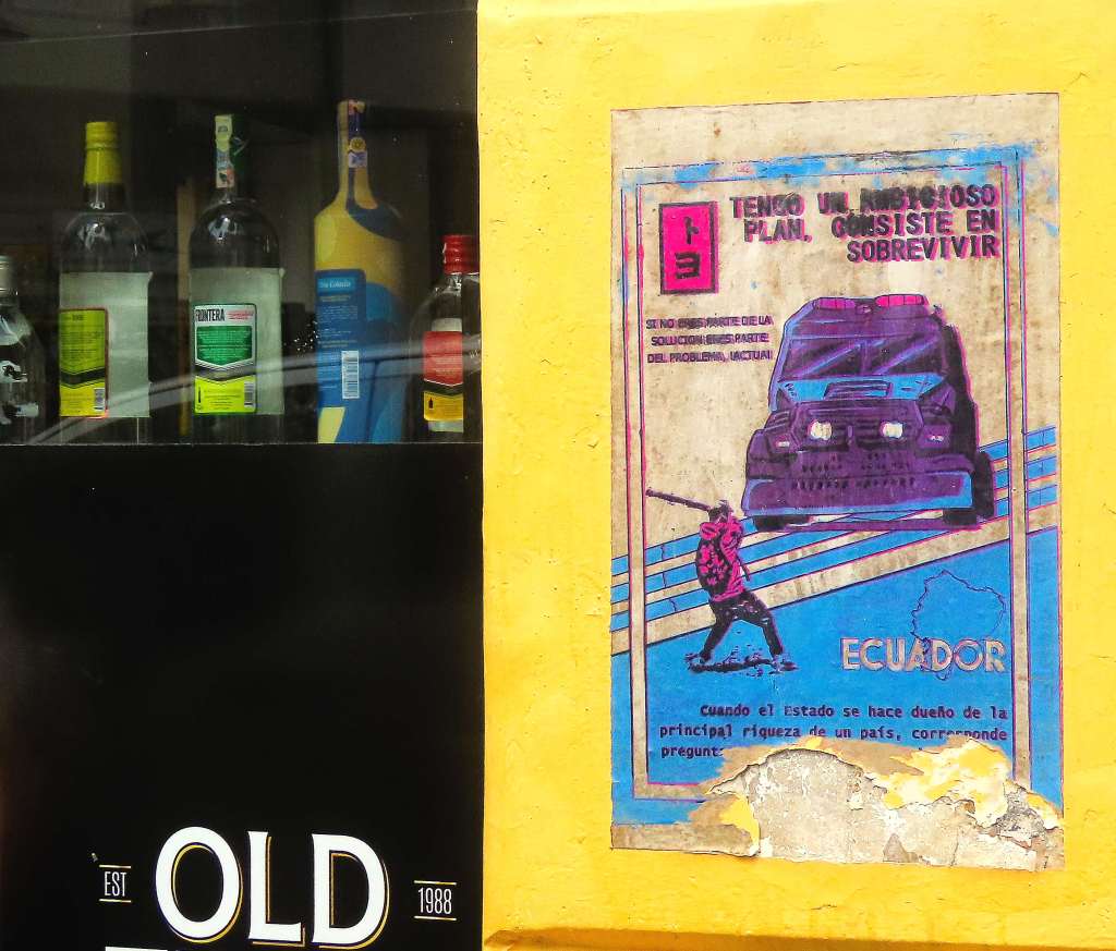 I know many people are turned off by graffiti, but I take a certain amount of graffiti as a good sign. I was pleased to see evidence of a robust counter-culture in Cuenca. I’m not familiar enough with Ecuadorian politics or Cuenca’s local politics to understand the need for a counter-culture, but I feel it often represents the kind of diverse thinking that every community can benefit from. Is the work below directed at corporations, wealthy immigrants to Ecuador, or someone else?