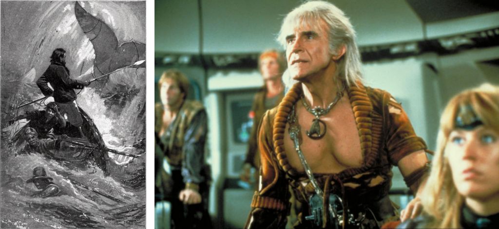 It doesn’t hurt that Star Trek II: The Wrath of Khan borrows heavily from Herman Melville‘s classic revenge tale Moby-Dick, with Admiral Kirk as the white whale pursued by Khan’s Captain Ahab. Khan even quotes twice from Moby-Dick, the last time with his dying breath: “To the last, I will grapple with thee. From hell’s heart, I stab at thee. For hate’s sake, I spit my last breath at thee.” From there, it seems natural to recall Ahab’s Wife: or, The Star-Gazer, Sena Jeter Naslund‘s novel about Una Spenser, Captain Ahab’s wife, who is barely mentioned in Melville’s book. With Naslund, Una gets a life or her own that is still situated in, and expands on, the world Melville imagined.