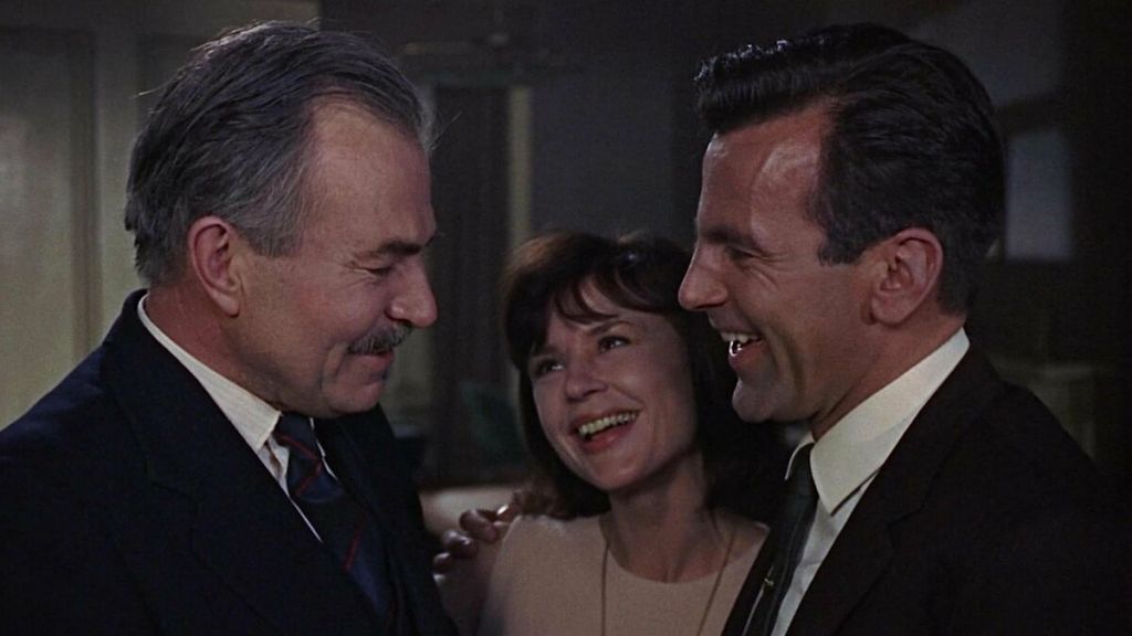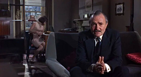 The music is one of my few gripes with The Deadly Affair. Quincy Jones composed a lovely bossa nova score, but the music’s bouncy tone doesn’t fit Dobbs’ staid world of Cold War espionage. And Mason is excellent as Dobbs, but far more emotive than the nearly-inert Smiley of the novel. (This can work in your favor if you haven’t read the book.) The cinematography, on the other hand, perfectly reflects the muted and shadowy nature of Dobbs’ life. Director of Photography was Freddie Young, who you may not recognize by name but you’ve likely seen his work, as he was the cinematographer on over 130 movies, including Lust for Life (1956), Lawrence of Arabia (1962), and You Only Live Twice (1967). In The Deadly Affair, Young pioneered the use of flashing, or pre-fogging, by carefully exposing the film to a small amount of light before use, reducing the film’s color palette in a way that Lumet described as “colorless color.” Vilmos Zsigmond used the technique later in McCabe & Mrs. Miller (1971) and The Long Goodbye (1973).
