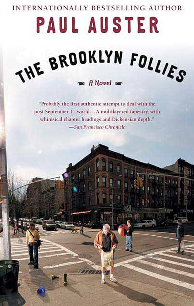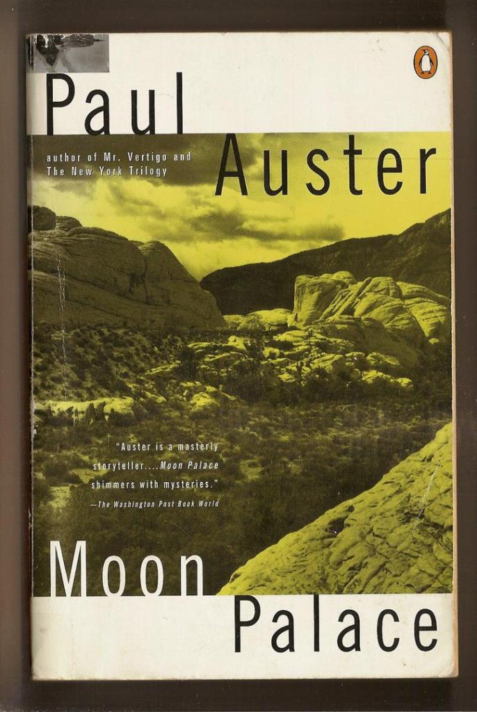 Moon Palace was published in 1989, and, like The Brooklyn Follies, no simple plot description does it justice. It primarily depicts the life of Marco Stanley Fogg – whose name and initials have multiple meanings – as he is orphaned at a young age, raised by his Uncle Victor, and is helped along the way by Kitty Wu and Zimmer. (Zimmer’s primary function can be predicted by his name; zimmer is the German word for room.) Most of the action takes place in New York City, with side trips to Chicago and Utah. The moon is a recurring image throughout the book, which begins in 1969, the year of the Apollo 11 moon landing. Auster apparently based Marco Fogg somewhat on his own life – like Marco’s, Auster’s father was largely absent during his childhood.