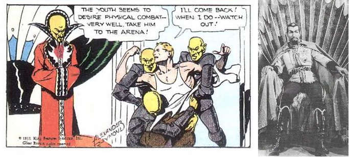 By 1936, however, one might expect U.S. audiences to have been more alert to the fascist expansionism of Hitler, Mussolini, and Franco (the Spanish Civil War began in 1936) than possible threats from Asia. European audiences certainly were, as indicated by a year-end British Pathé newsreel. Newsreels were a common information source from the 1910s until as recently as the 1970s. The Flash Gordon serial chapters were very likely preceded by a newsreel. Since Flash Gordon was produced by Universal Studios, the news may also have been from Universal, which distributed a twice-weekly newsreel from 1929 to 1967. A few of these are available at the Internet Archive. Did Ming represent an active threat in U.S. viewers’ minds? Judging from the available newsreels, it doesn’t appear so. Either way, Flash Gordon (the movie) is not overtly racist; the primary objective was entertainment, but the symbolism would have been plain enough to viewers who were looking for it. The bottom line: Ming is a vengeful, power-hungry sexual predator who betrays his own allies, is easily distracted by praise and flattery, and has a self-serving daughter of sketchy loyalty. Pure fantasy!