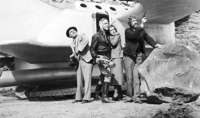 Happy, Flash, Dale, and Zarkov land on the red planet in Flash Gordon’s Trip to Mars