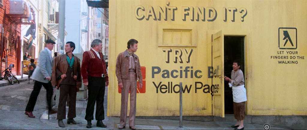 Unlike The Motion Picture, most of this mission takes place directly on earth, primarily in or near San Francisco. Increased location filming offered a reduced need for expensive visual effects but created other challenges. (The biggest challenge from Paramount’s perspective seems to have been Shatner’s and Nimoy’s salaries, which provided a catalyst for developing The Next Generation.) Still, it’s fun to see our heroes navigating contemporary earth, and in a more sophisticated way than the series’ time travel episodes allowed. The time travel sequence itself, the slingshot-around-the-sun maneuver recalled from “The Naked Time” and “Tomorrow is Yesterday,” is handled more artistically this time, foreshadowing bits of future dialogue and the dreamlike prospect of a three-hundred-year shift in mindset.