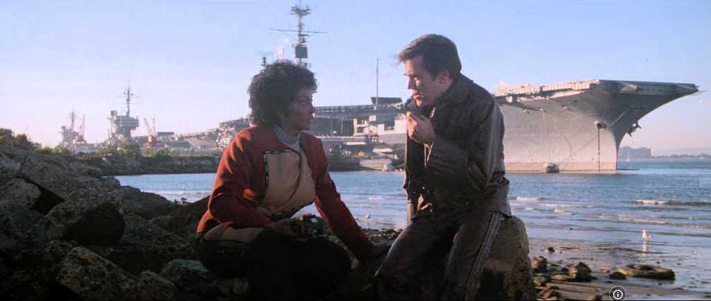 Once on earth, of course, sourcing a pair of humpback whales, with the help of Dr. Taylor, becomes paramount. (No pun intended.) Taylor is the perfect bridge between the Enterprise crew and 1980s humanity: she can interpret “terra incognito” for the future travelers, but she is forward-thinking enough to adapt to the twenty-third century after she hitches a ride on the Bird of Prey. Despite a little flirting between Taylor and Kirk, it’s a blessing that the filmmakers didn’t go for another quickie Kirk romance. This allows more dignity and credibility for both characters, and we’re left with the feeling that Taylor will adapt quickly to her new life in the 23rd century.