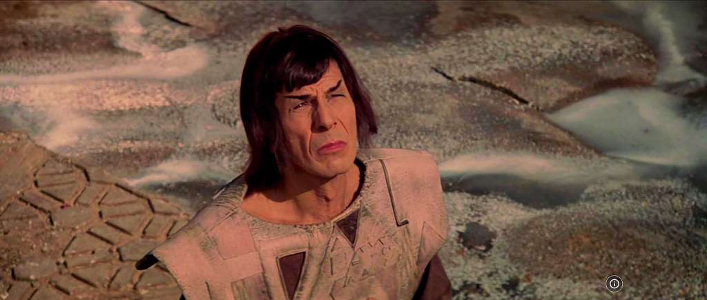 That’s the lesson Spock learns from the mission. V’Ger is the entire reason for Spock’s presence in the story, and Spock gets the movie’s most substantial character arc. In this mission, Spock is the only true explorer in this band of explorers. We first find Spock on his home world, nearing completion of the Vulcan ritual of kolinahr, which is an elimination of all remaining emotions. In fact, Spock has presumably completed the kolinahr process at this point because he has reached the medal awards stage. This is very likely a greater challenge for half-human Spock than for a conventional Vulcan. Yet Spock is clearly not fully committed to kolinahr, because he backs out at the last minute after a signal from V’Ger, a reaching out for a kindred spirit – because V’Ger is equally confused about its true needs.