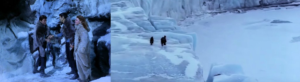 Spock and McCoy get the lion’s share of episode time, however, struggling to survive in an “arctic wilderness” similar to the frozen landscape Kirk and McCoy will traverse in Star Trek VI: The Undiscovered Country (1991). Just as Kirk and McCoy will be assisted, then betrayed, by a mysterious woman on Rura Penthe, Spock and McCoy will be similarly misled by Zarabeth (Mariette Hartley). Zarabeth was sent to the ancient past by the tyrant Zor Kahn (Kaaaaaahhhhnnn!!!) when her relatives joined a conspiracy to assassinate Zor Kahn. Wishing to eradicate the assassin’s entire family without risk to public opinion of widespread executions, Kahn sent Zarabeth and others to obscure times when they would suffer complete solitude. Kahn wasn’t entirely successful – Zarabeth says he sent her to a time when no one would ever find her, yet McCoy and Spock stumbled onto her without even trying. How long before the time of Mr. Atoz did Kahn rule? We don’t know, but Sarpeidon seems to have progressed considerably, now using the Atavachron to save lives rather than torture them.