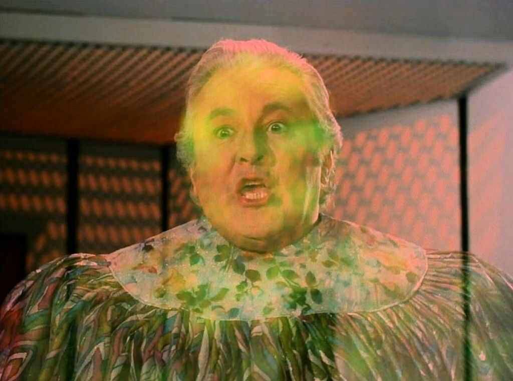 If you think that digression about Melvin Belli is off topic, I haven’t forgotten the question of Gorgan’s motive, it’s just that serial killers and David Fincher movies are more interesting than this episode. In the short term, Gorgan wants the children to divert the Enterprise to a large Federation settlement on the planet Marcos XII, where he expects to find many new followers. In the long term, however, that line about commanding the universe is all we have to work with. Spock shares a rambling legend about space-faring marauders “who made constant war throughout the system” and “were themselves destroyed by those they had preyed upon.” The legend “warns that the evil is awaiting a catalyst to set it again into motion and send it marauding across the galaxy.” We’re apparently meant to assume that the science work on Triacus provided the catalyst by freeing the evil. The lead researcher, Professor Starnes (James Wellman), talks about a species on Triacus being killed by a natural catastrophe. Were they the marauders? It’s all a bit muddled. Perhaps attention and subservience from others is all Gorgan wants. It’s hard not to think of a certain Very Stable Genius when Gorgan dissolves at the end, like the Wicked Witch melting in water, complaining bitterly but powerless without his mindless followers.