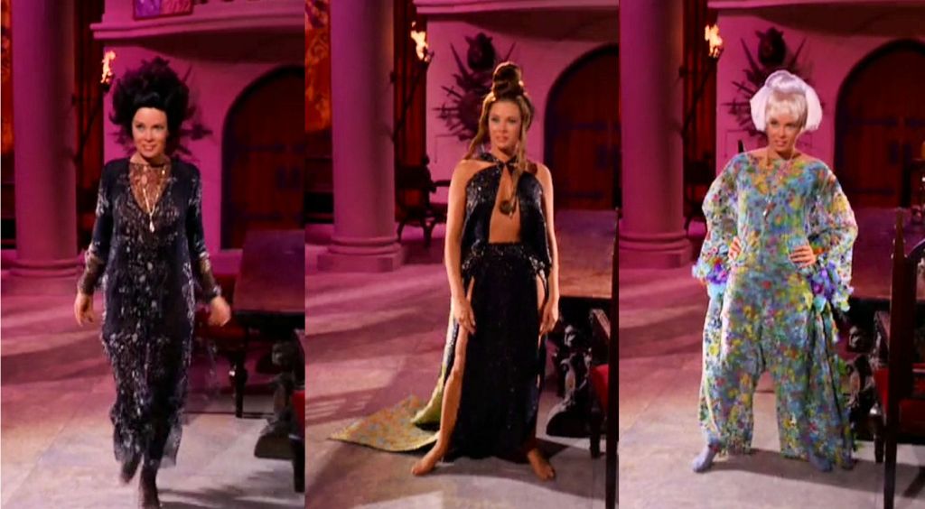 As with all the TOS episodes, I appreciate the Mission Log Podcast’s discussion of “Catspaw.” They speculated that Sylvia’s behavior might be an accidental indictment of feminism, and it’s a compelling argument, given the series’ history of misogyny. Sylvia rejects the old customs (literally called “the Old Ones” and represented by the nagging Korob) and dares to behave independently: “I live by my own decisions,” she says. As a consequence of assuming human form, Sylvia soon loses control to pleasures of the flesh. Kirk resists Sylvia’s wiles and tells her, “A woman should have compassion, but I forget you’re not a woman.” She tempts him further, rapidly changing into a variety of female forms, to no avail. Sylvia’s descent into emotional abandon drives the conflict with Korob, leaving Korob, as the rational male, to free the landing party when Sylvia finally goes mad with power. This final plot development is the only connection to any of the series’ primary themes – power corrupts, and the more power (independence) Sylvia has, the more she wants. A counter-argument to the anti-feminism interpretation is that Kirk, as the “star” of the series, needed a worthy foil, and making Sylvia his primary nemesis allowed for smooching scenes that might attract a female audience.