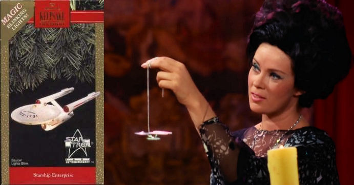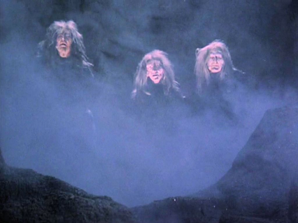 Given the air date, “Catspaw” is an obvious attempt at a Halloween episode. The castle, witches, black cat, and the dungeon where the landing party is confined, are all horror story tropes, but more suited to children’s stories than entertainment for grown adults. Kirk and McCoy both mention Halloween and trick-or-treating. Halloween, sometimes under different names, has been observed in many western countries for centuries, but was not universally celebrated in the United States until the early 20th century. Or are the three witches a Macbeth reference? Macbeth turned his witches’ prediction into a self-fulfilling prophecy, which has no bearing on this episode. None of this makes much sense in the context of the story, because our landing party finds the various Halloween elements more confusing than frightening. At any rate, it’s hard to believe Halloween would be observed by a multi-planet federation in the twenty-third century. I half expected a commercial for Disney’s Haunted Mansion.