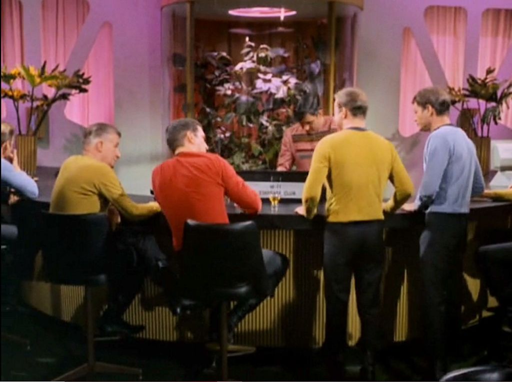 We can at least compliment Cogley for his love of books. We assume Kirk is a reader, because we’ve seen books in his quarters and we know he enjoys Shakespeare. Yet we doubt Kirk’s attachment to his small collection when he tells Cogley a computer takes up less space than physical books. The episode ends with Cogley gifting a book, title unknown, to Kirk via Shaw. Is this what launches the “fondness for antiques” that prompts Spock to observe Kirk’s birthday with a gift of Dickens’ A Tale of Two Cities in Star Trek II: The Wrath of Khan (1982)?