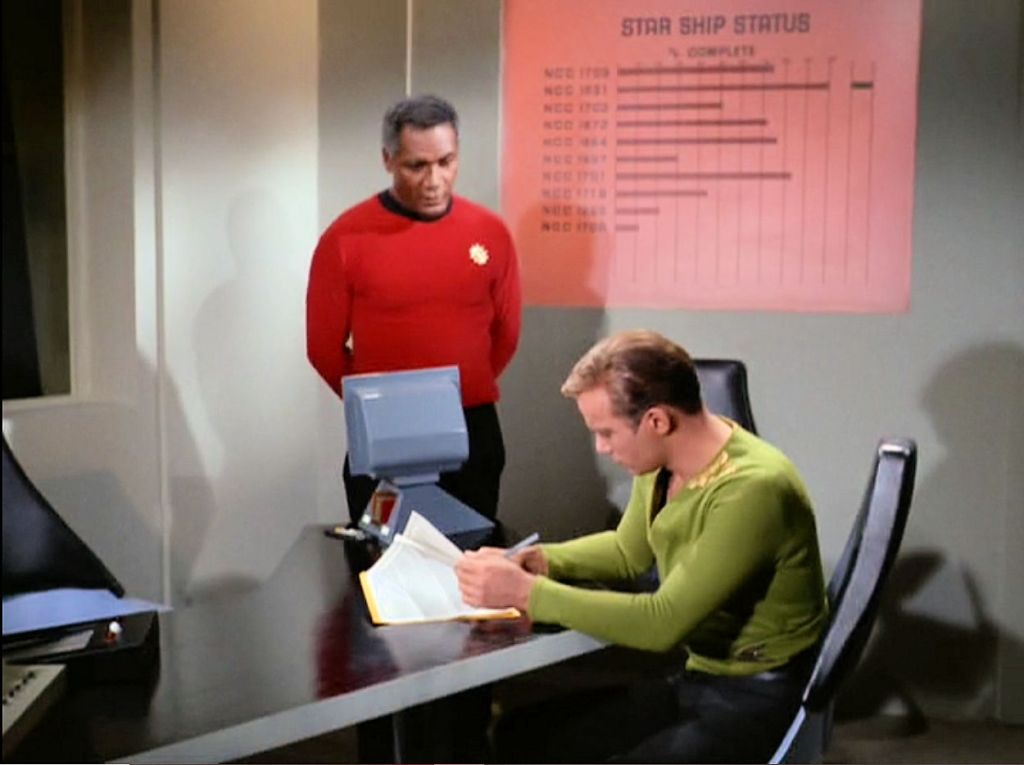 Another interesting detail is the Starfleet paperwork that sets off the initial conflict. The Federation is a bureaucracy, and the death of a crew member will require documentation as to cause and circumstances. We can trust that similar follow-up has occurred with past deaths of crew members. (This is not the first time Starfleet protocols have given Kirk a headache, as McCoy demonstrated in “Dagger of the Mind.”) The drama that unfolds, resolving the divergence between Kirk’s official statement and the ship’s logs, demonstrates that Starfleet understands the importance of preserving a record of the truth, and we will return to this subject later.