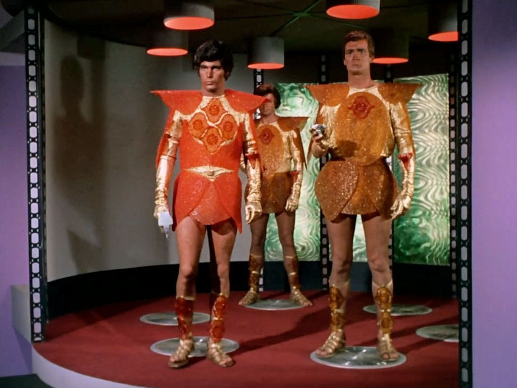 A bigger question is why an Asian woman was cast in the role of the thuggish warrior-wannabe who attacks her food like an animal and complains obsessively? Let’s hope there was no discriminatory “Orientalism” behind the decision. The Dohlman’s bodyguards don’t appear Asian, unlike France Nuyen, born in France of a French mother and Vietnamese father. And if the Elasian guards look like they stole their uniforms from a Howard Johnson’s restaurant, that’s because they did: plastic place mats were the primary component for their costumes. Along the way, Uhura also gets slighted, as she is forced (“volunteers”) to give up her quarters for Elaan, who only complains about the generosity. As often as the Enterprise hosts visitors, it’s a mystery why there are no formal guest quarters on the ship.