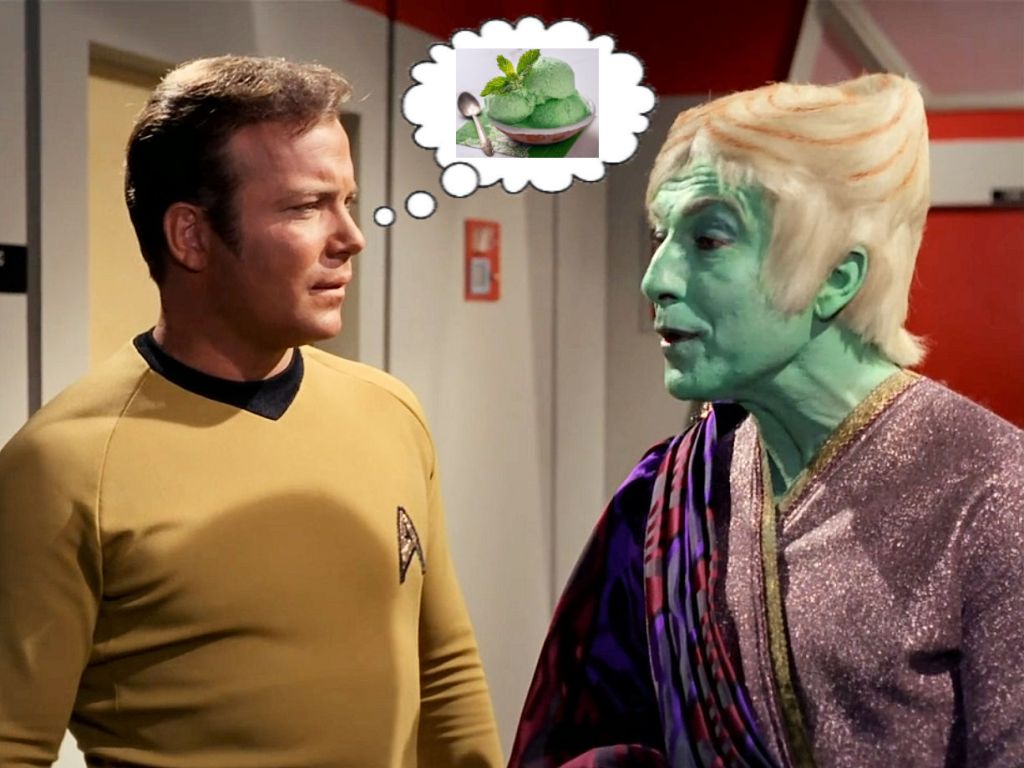 Petri is the only Troyian we meet, so we can only speculate to what extent he represents his people. His skin is a similar shade of green as the Wicked Witch from The Wizard of Oz (1939). Despite the hostilities between Petri’s planet and Elas, he goes out of his way to be courteous to Elaan and makes a sincere effort to persuade her to cooperate. He soon withers in the face of Elaan’s hostility, telling Kirk, “We cannot make peace with people we detest.” (Kirk’s advice only works if both parties agree: “Stop trying to kill each other. Then worry about being friendly.”) Petri finally throws in the towel after the Dohlman stabs him with the dagger she always wears on her arm, forcing Kirk to step into the role of trainer because apparently there is no one else qualified on a ship that regularly undertakes diplomatic missions and carries over four hundred crew members.