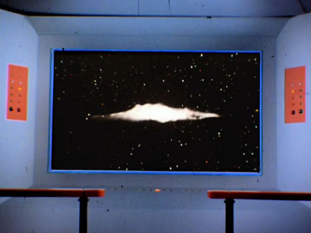 “Obsession” tries to play up the Kirk-Spock-McCoy triad, but, again, this has been handled better in prior episodes. Spock and McCoy wisely unite in questioning Kirk’s motives and mental state. Both, equally wisely, are skeptical of Kirk’s claims that the cloud is intelligent. (Kirk talks repeatedly about the cloud possessing “intelligence.” I think he really means “consciousness,” or an awareness of its actions.) More importantly, they (and Scott) keep reminding Kirk that delaying the vaccine transport may cost lives. They press Kirk, but not enough under the circumstances. We do get a sense of the importance of the ship’s logs as a record of the crew’s actions, as McCoy’s pending medical log entry is the subject of considerable debate. When the cloud is confirmed to have “intelligence,” McCoy says, “I was wrong,” and this is technically correct, but the apology is unwarranted; McCoy was right about the larger issue of Kirk’s dereliction of duty. Spock is even more out of character. When the Enterprise pursues the cloud to the site of the Farragut incident, Spock says, “Evidence indicates the creature is here to spawn,” despite a complete non-existence of evidence. Also without evidence, he then decides the cloud will divide into thousands of killer clouds. Spock’s conclusion is that the cloud – the last of it’s kind – must be killed! Thank heaven Spock was in a better mood when he met the Horta.