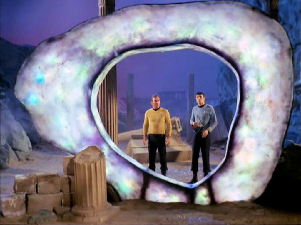 “City” is a classic TOS story of sacrifice that illustrates the best qualities of the franchise: an ethical quandary, futuristic elements grounded in terms relatable to contemporary audiences, drama with genuine consequences balanced by a dose of humor, strong acting all around, a perfectly cast guest star, all on a foundation of friendship. There’s even a dose of foreshadowing: Kirk’s instruction to the landing party is that, should he and Spock fail in their mission, each individual is to go through the Guardian’s portal; if they can’t find McCoy, they should get on with their lives as best they can. This is very similar to the premise of the season three episode “All Our Yesterdays.”