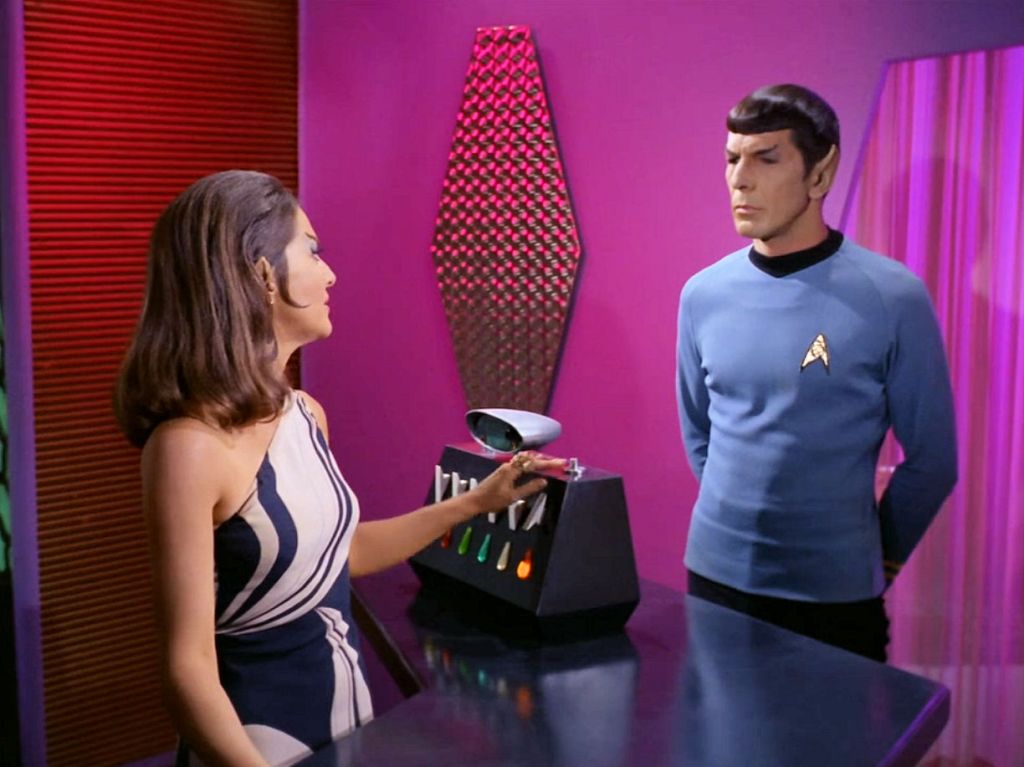 Anyone traumatized by the wacky hijinks of “Spock’s Brain” should be relieved that we’re back to more conventional derring-do with “The Enterprise Incident.” This week, Kirk establishes a pattern of irrational behavior among his crew before ordering the Enterprise to cross the Neutral Zone into Romulan space. The ship is soon surrounded by three Romulan vessels led by the Romulan Commander with no name (Joanne Linville) and her loyal Sub-Commander Tal (Jack Donner, who played a Vulcan priest in two episodes of Enterprise). We gradually learn that Kirk and Spock are on an intricate espionage mission to obtain a cloaking device, technology revealed in “Balance of Terror” that the Romulans may use toward nefarious ends against the Federation. Let’s ignore the fact that the cloaking device looks suspiciously like the head of Nomad from “The Changeling” on top of a receptacle from “Return to Tomorrow.”