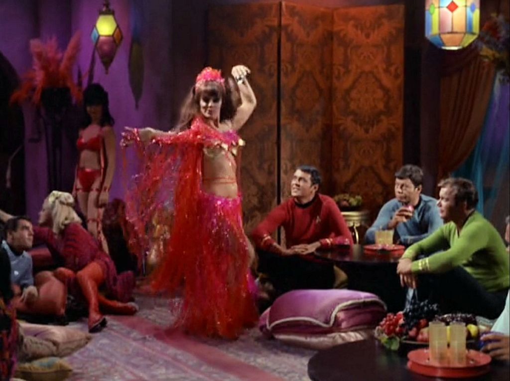 I recall rarely seeing “Wolf in the Fold” in reruns during childhood, making it the least memorable of the series for me. In hindsight, I was better off. As a teenager I would have simply seen this as the belly dancer episode, but today it’s an accidental parable on sexual predators. This week, the Enterprise crew takes shore leave on the planet Argelius II, with Scott in need of emotional recovery after being injured in the episode’s backstory. Kirk, McCoy, and Scott lust over a belly dancer in an establishment with seating on pillows arranged around tables, reminiscent of the Orion slave girl scene in “The Menagerie.” (It’s so similar, the soundtrack uses the exact same Middle-Eastern-sounding music.) Apparently this is how the men-folk unwind in the TOS universe. Scott takes the dancer on a stroll through the foggy night – soon the woman is stabbed dead with Scott nearby, holding a blood-stained knife. Over the course of the episode, two more women are killed, with Mr. Scott the only visible suspect. After a laborious debate about Scott’s guilt or innocence (as if we don’t already know!), the perpetrator ends up being Jack the Ripper! Or, at least, a cloudy malevolent life form called Red Jack that possessed Jack the Ripper and a host of other serial killers.
