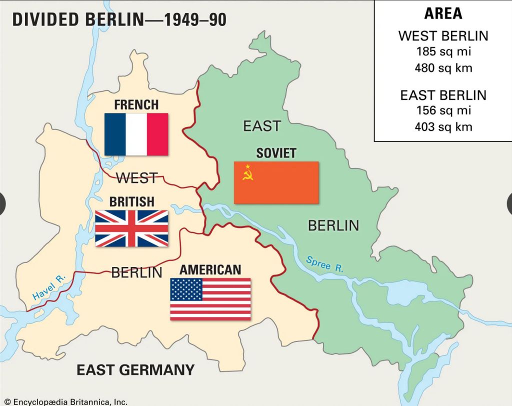 Grant was sent to Berlin, that iconic Cold War city, “about the time of the Corridor trouble with the Russians…” The division of Germany into Eastern and Western nations after World War II left Berlin deep in Soviet-controlled East Germany. The 1945 Potsdam Agreement divided the city into four sectors, three controlled by Western allies (U.S., UK, France) and the fourth controlled by the Soviets. The treaty did not, however, guarantee road or rail access to Berlin. With the long-term goal of uniting Germany under Soviet control, Joseph Stalin blockaded Berlin from Western access in 1948. The U.S. / British response was the Berlin Airlift from June 1948 through September 1949, delivering over 2.3 tons of supplies to East Berlin.