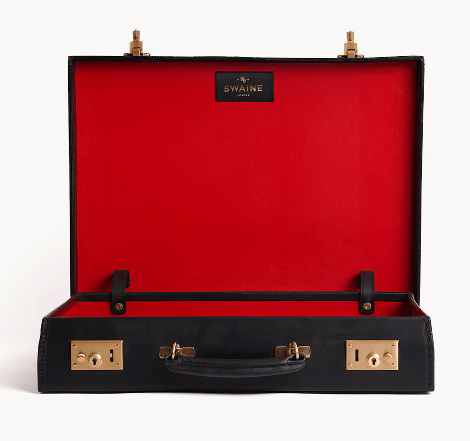 Grant carries a Revelation suitcase, a brand of Antler luggage, founded in England in 1914 by bicycle seat manufacturer John Boultbee Brooks. The company started out manufacturing sturdy trunks for sea travel or to attach to motor vehicles. They introduced more soft-shell luggage in the 1940s and 1950s as air travel became more accessible to the masses. Antler is still in business but in 2016 Revelation was spun off as a sister brand.