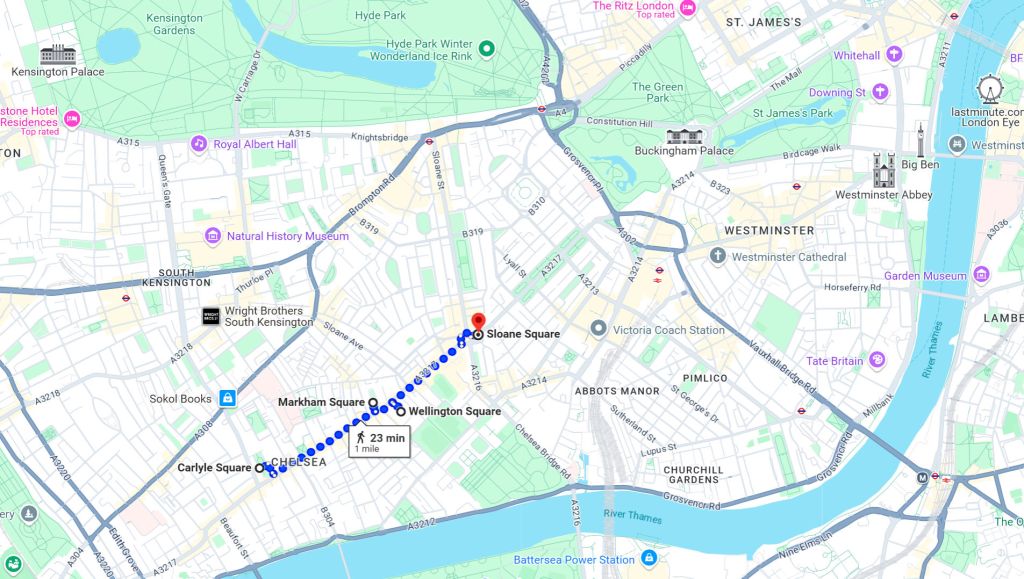 Bond imagines Klebb as a “rich widow” who would be “driven to the tea-room in the rue de Berri…” The Rue de Berri is a short street in Paris of the Champs-Élysées, and home to several upscale (isn’t everything in Paris upscale?) hotels and restaurants. If there is a specific tea room Bond has in mind, I’m unable to locate it.